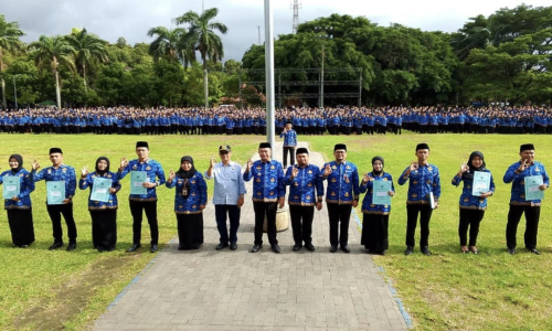 Penyerahan SK secara simbolis tersebut menjadi momentum bersejarah bagi ribuan tenaga honorer yang kini resmi menyandang status sebagai bagian dari Aparatur Sipil Negara (ASN).