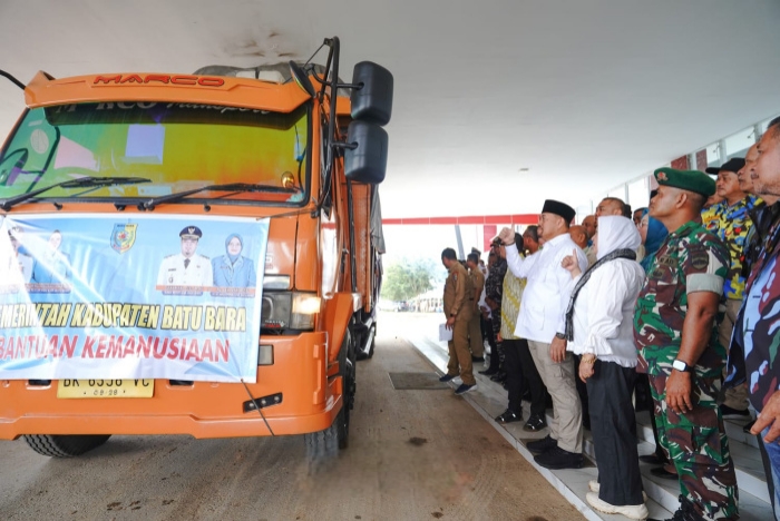 Bentuk Kepedulian Terhadap Korban Bencana Alam, Bupati Batu Bara Lepas Keberangkatan 12 Truk Bantuan