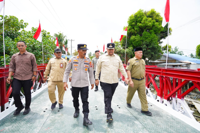 Kegiatan ini diikuti dari lokasi pembangunan Jembatan Bailey di Desa Sei Buah Keras, Kecamatan Medang Deras, Kabupaten Batu Bara, yang diselenggarakan oleh Kodim 0208/Asahan, Senin (9/3/2026).
