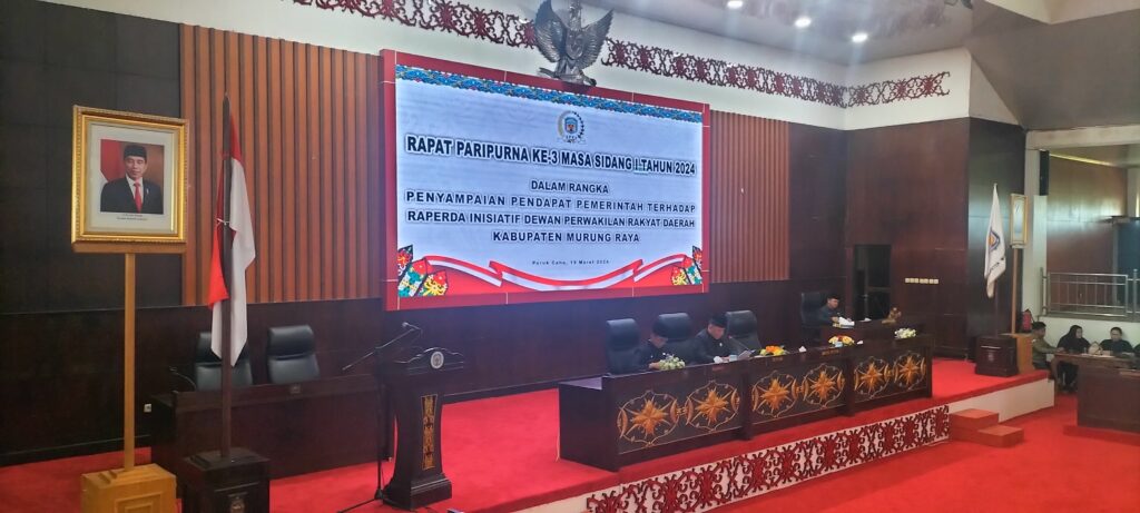 PURUK CAHU, RADAR-X.net – Dewan Perwakilan Rakyat Daerah (DPRD) Kabupaten Murung Raya bersama Pemerintah Daerah Murung Raya, Prov. Kalimantan Tengah menggelar rapat Paripurna ke 3 Masa Sidang 1 tahun 2024 dengan agenda penyampaian pendapat Pemerintah terhadap Raperda, Inisiatif DPRD, Selasa (19/3/2024)