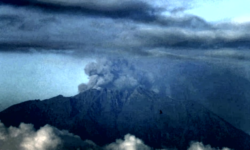 Kolom abu berwarna kelabu itu terlihat cukup pekat dengan intensitas sedang dan condong ke arah timur laut serta timur.