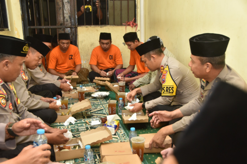 Kapolres Berbagi Makanan dan Berbuka Puasa Bersama Para Tahanan di Rutan Mapolres