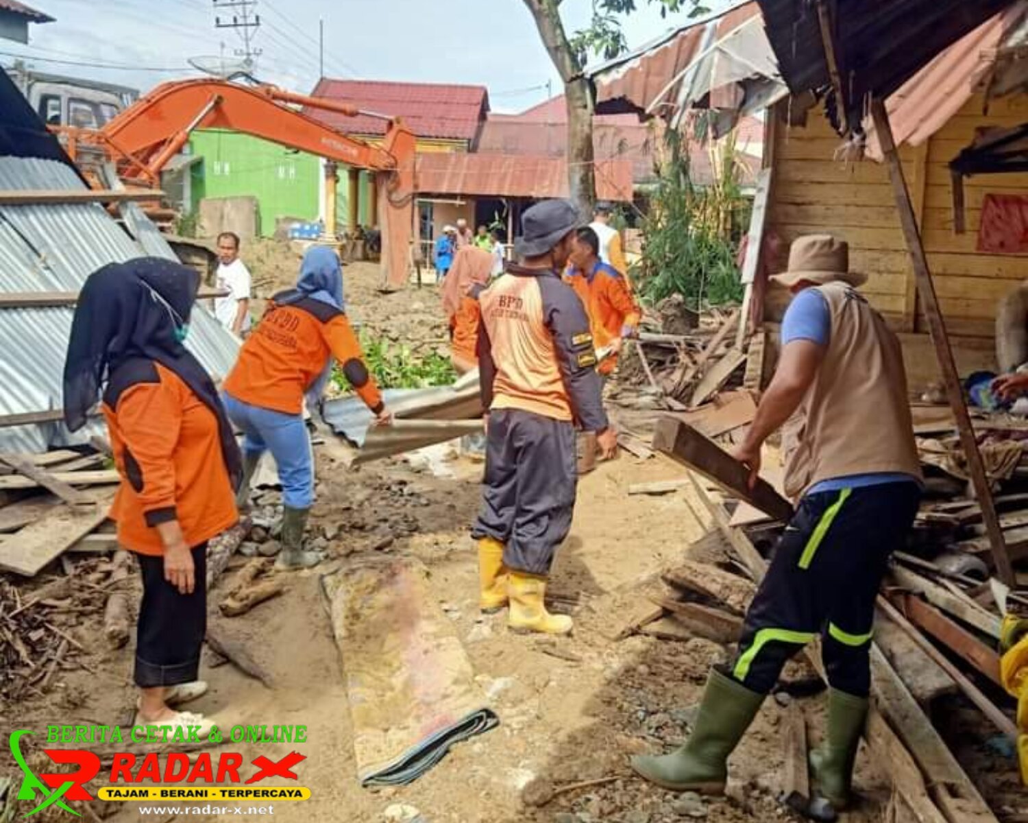 Kata Nazmi Desky, alat berat kita sebar di beberapa titik, untuk membersihkan material lumpur, bebatuan dan kayu gelondongan yang memupuk di jalan Nasional.