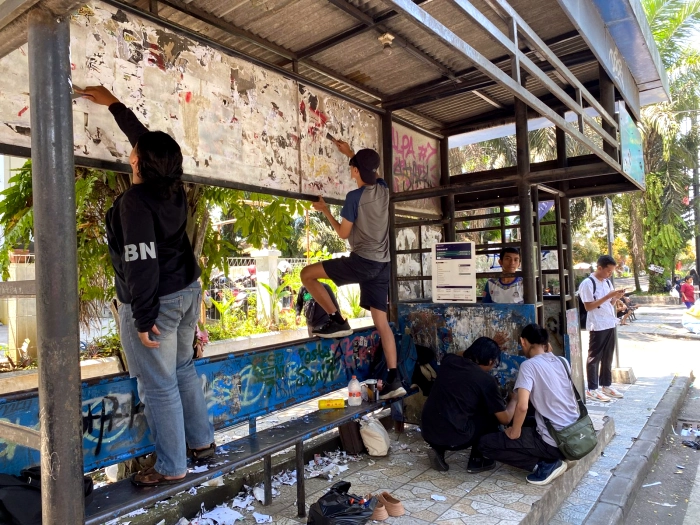 Aksi yang dilakukan tidak sekadar mengecat ulang tembok halte yang sudah dipenuhi poster dan coretan liar itu.