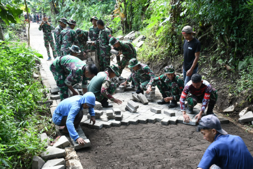 Satgas TMMD ke-123 Kodim 0822 Bondowoso Tetap Semangat di Bulan Puasa, Ribuan Paving Diturunkan