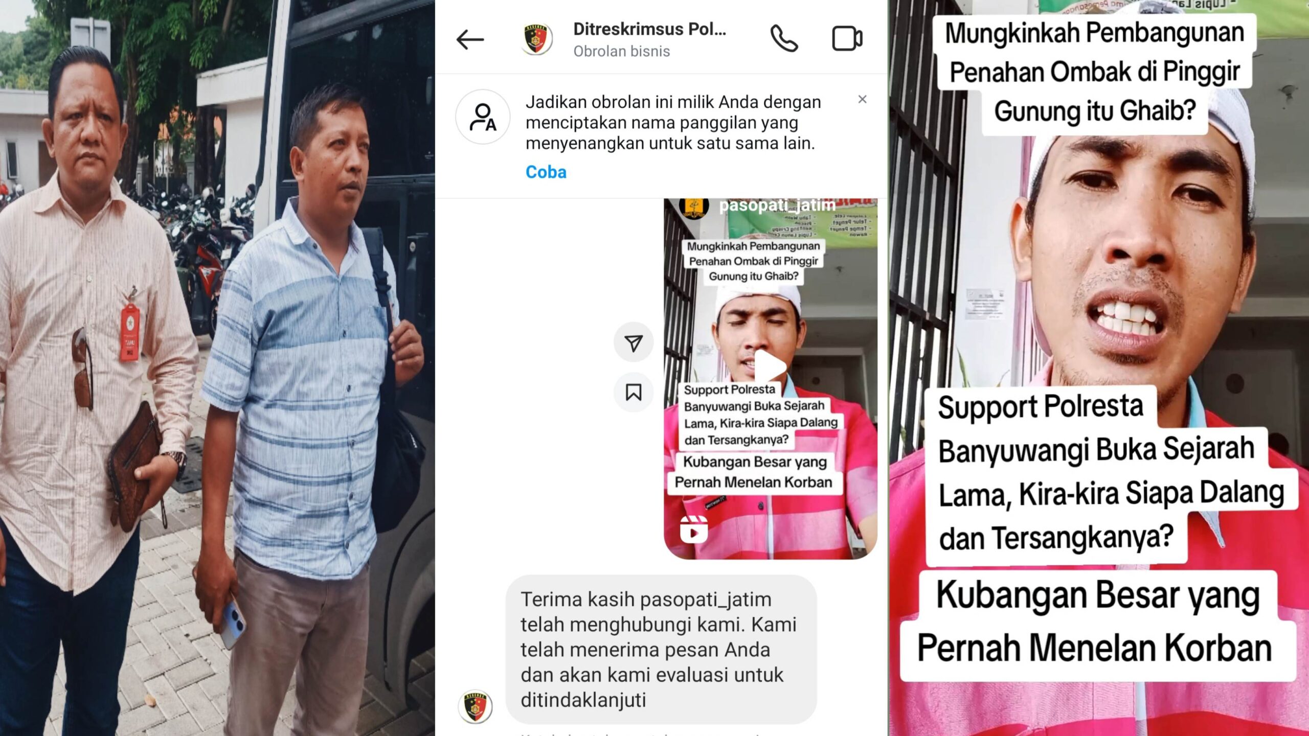 dengan adanya video tersebut yang diunggah oleh akun pasopati, dari salah satu akun resmi Ditreskrimsus Polda Jawa Timur membalas DM yang dikirim lewat Instagram.