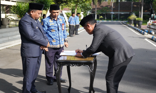 Sebagai bagian dari rangkaian acara, Wakil Bupati bersama sejumlah pimpinan perangkat daerah turut menandatangani deklarasi Pakta Integritas Sistem Penerimaan Murid Baru (SPMB) Tahun 2025.